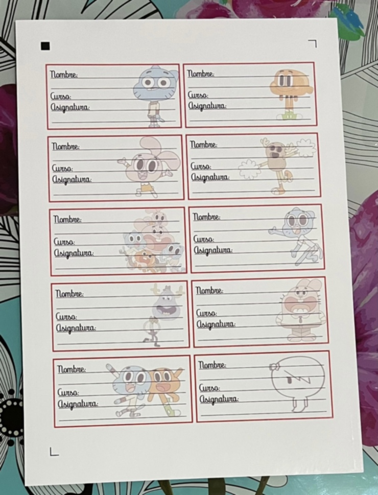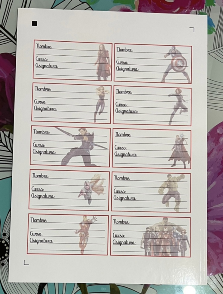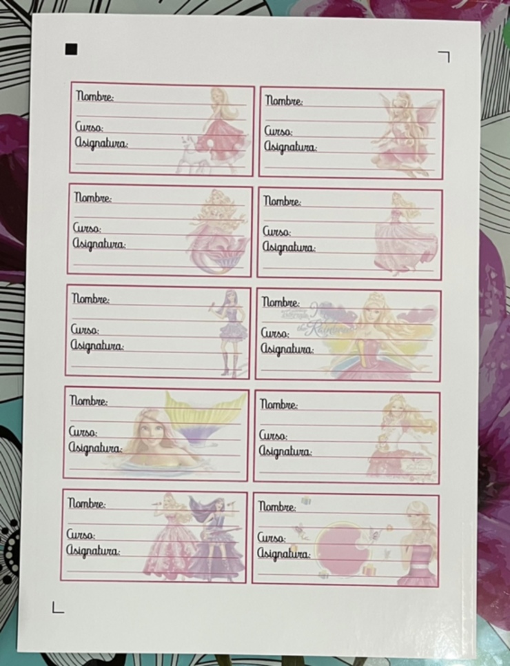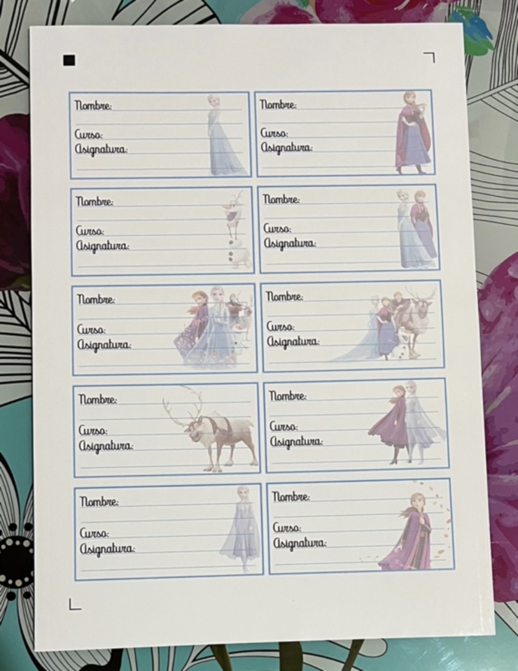 Etiquetas escolares autoadhesivas diseños