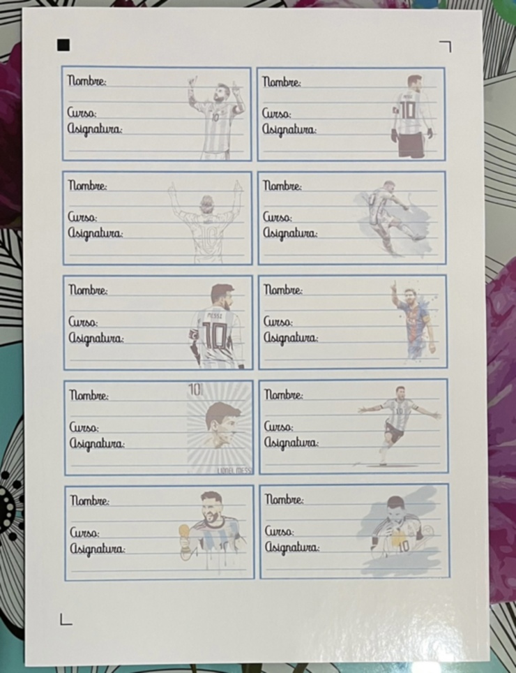 10 unidades por hoja con 1 temática personalizable.